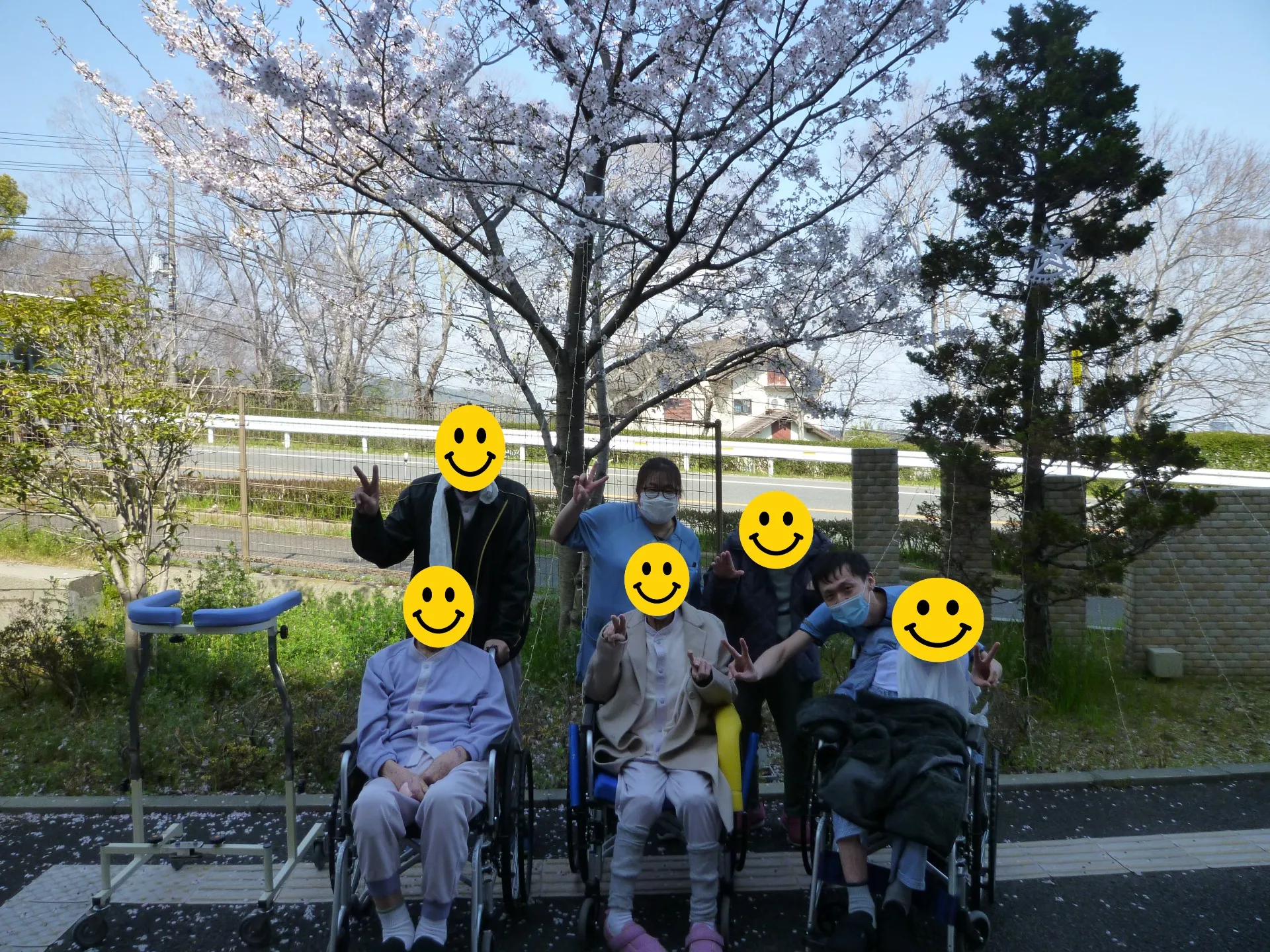 三日間とも天気よく温かい日差しの中、花見を入居者様に楽しんでいただけました(^^♪