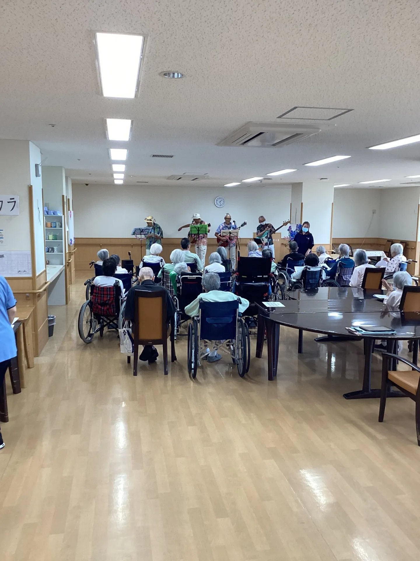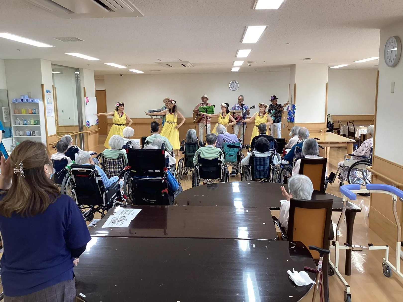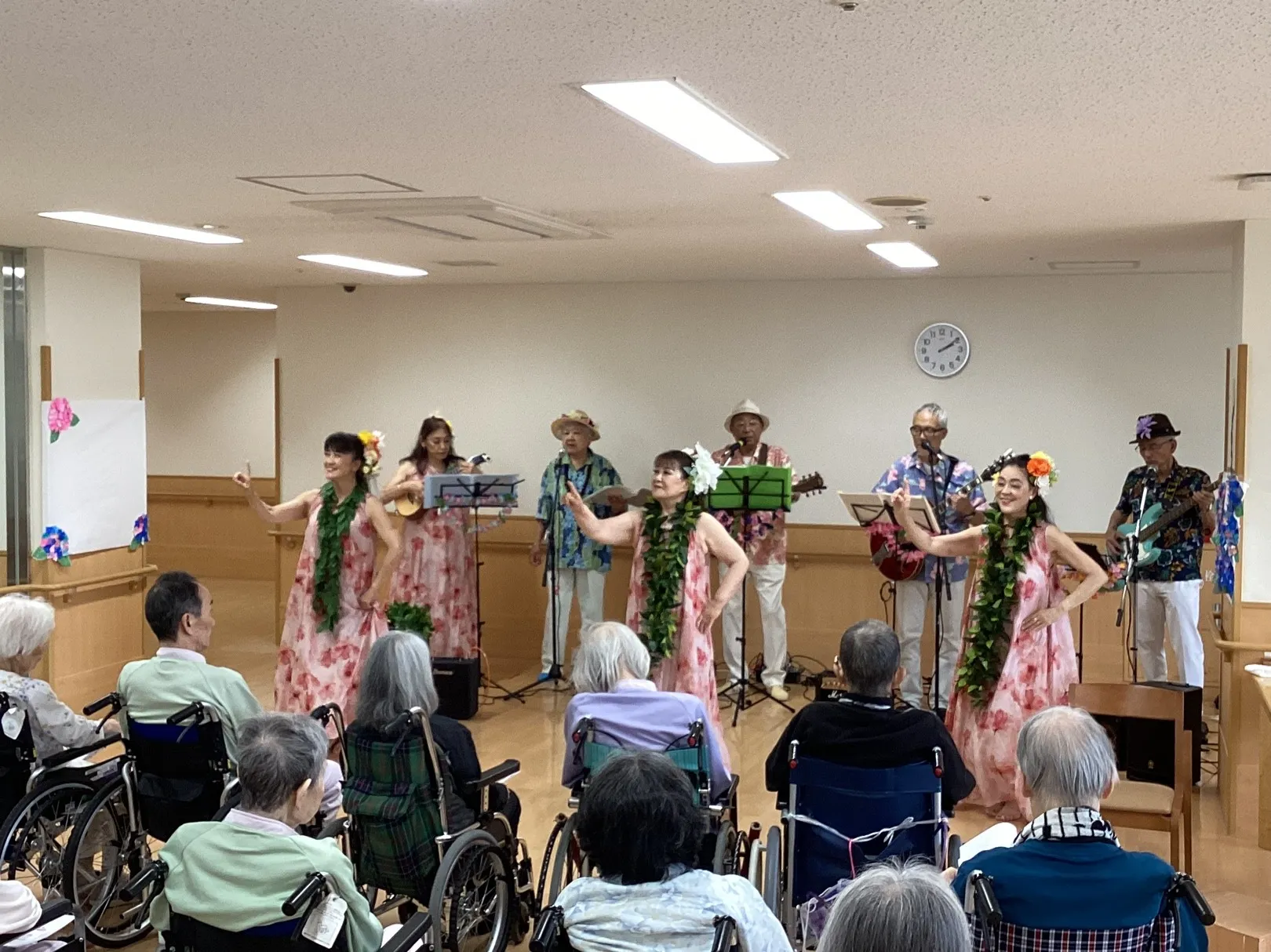 生バンドやフラダンスを披露していただき、ご利用者の皆さん楽しそうに時間を過ごされていました(^^♪