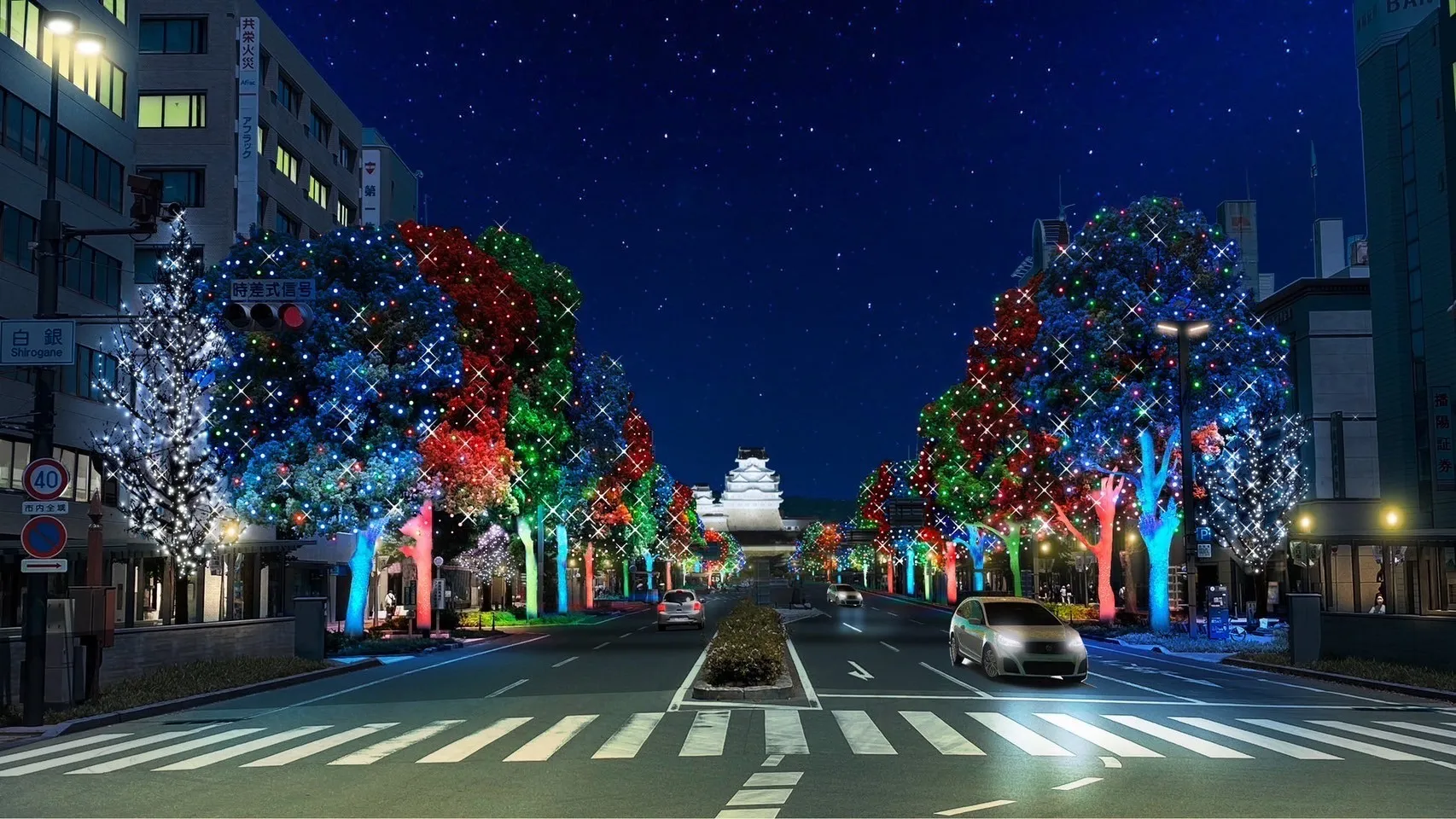 夜の街を華やかに彩るイルミネーション