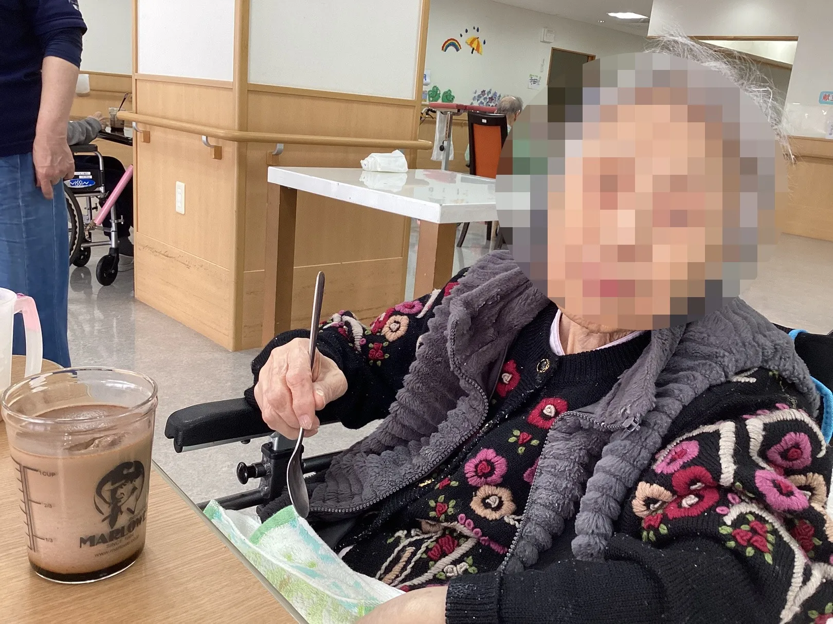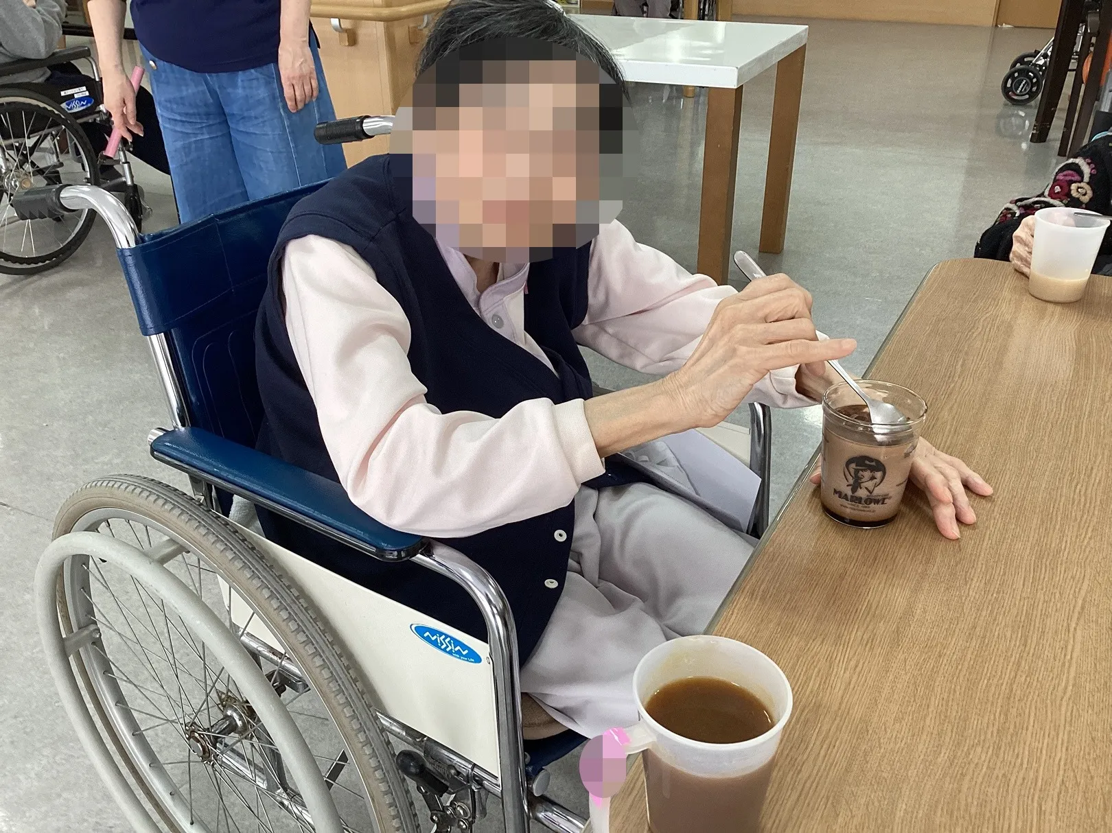 「甘くておいしいよ」と、スプーンを手にゆっくり味わわれるご様子も見られ、職員も思わず笑顔に。